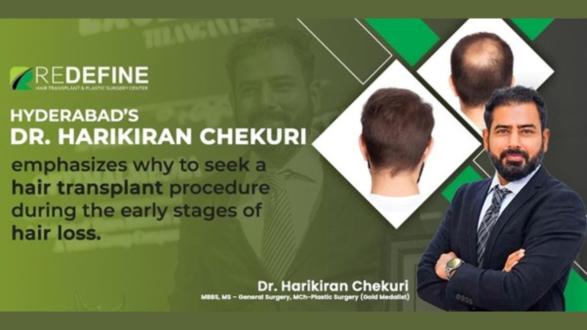 Hyderabad’s Dr. Harikiran Chekuri emphasizes why to seek a hair transplant procedure during the early stages of hair loss
