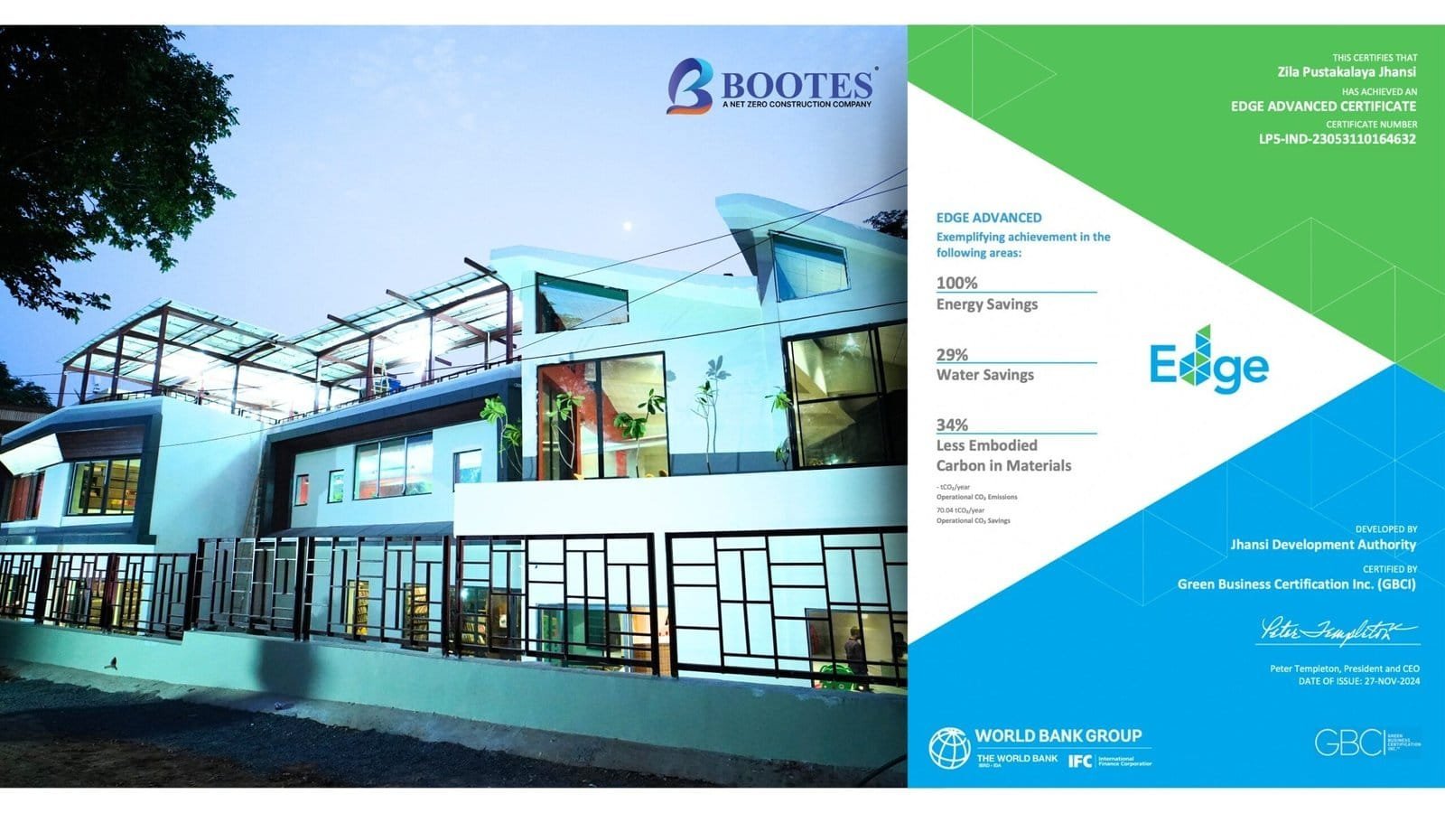 Gurugram (Harayana) [India] ,November 30: The Jhansi Library project, spanning 12,000 square feet and commissioned by the Jhansi Development Authority (JDA), with support from Jhansi Smart City, becomes Asia’s first to achieve EDGE Certification with 100% Energy Savings, from IFC, World Bank. The project was executed by BOOTES, India’s pioneering Net-Zero Construction Company, within an impressive timeframe of 90 days. EDGE, an initiative of the International Finance Corporation (IFC), a member of the World Bank Group, represents a global standard awarded to projects that implement cost-effective strategies aimed at minimizing energy consumption, water usage, and embodied carbon in construction materials. The strategies incorporated into the project design are subject to verification by an EDGE Auditor and certification by the Green Business Certification Inc. (GBCI), which administers EDGE certification in numerous countries globally.